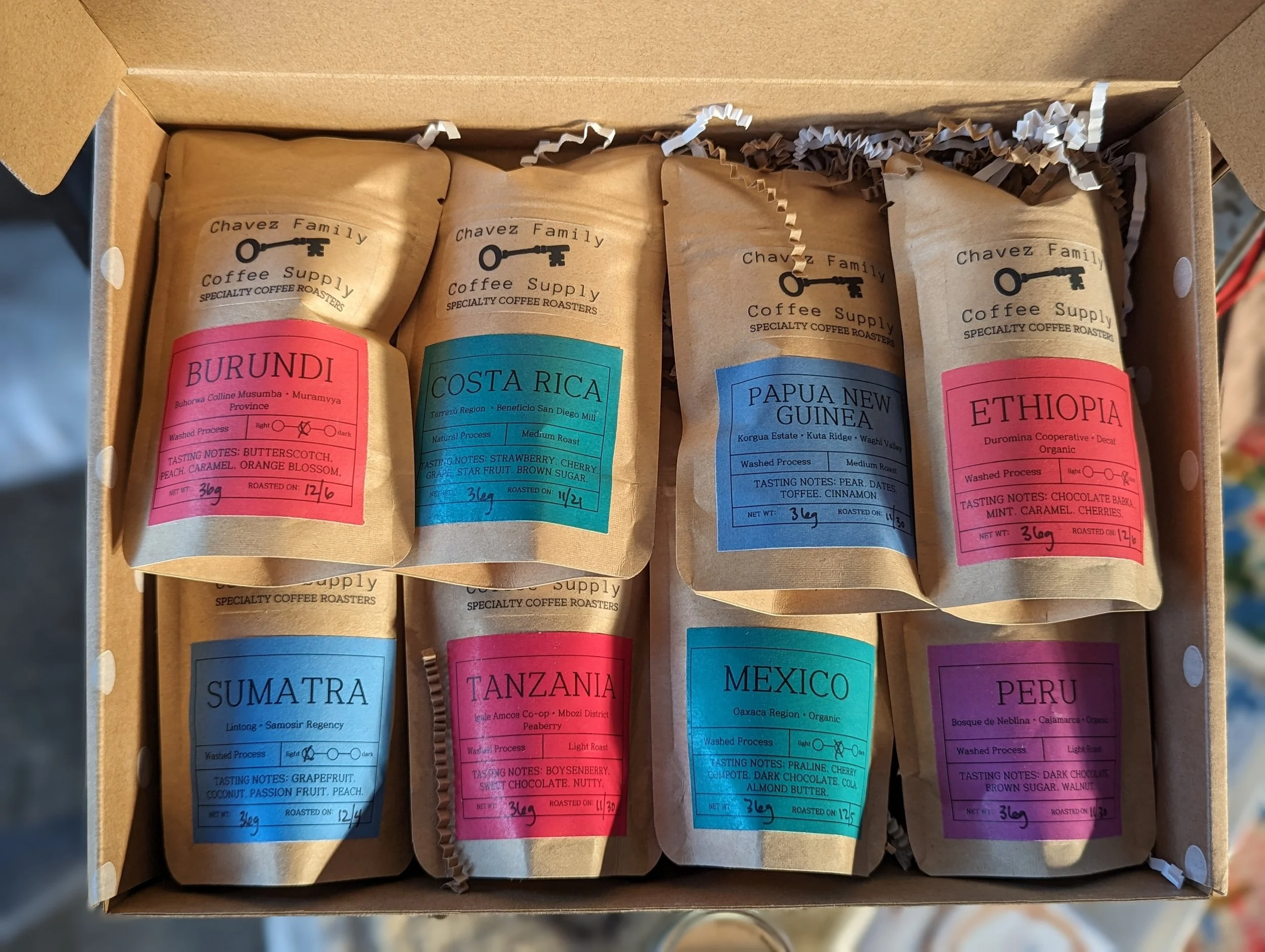Shop › Sip Into the Seasons Gift Box 36 Gram Image 1 of 2 Image 2 of 2 Sip Into the Seasons Gift Box 36 Gram $30.00 Try all 8 of our varieties in the 36 gram size.This size is great for a 2 cup pour over. Quantity: Add To Cart Added! Try all 8 of our varieties in the 36 gram size.This size is great for a 2 cup pour over.